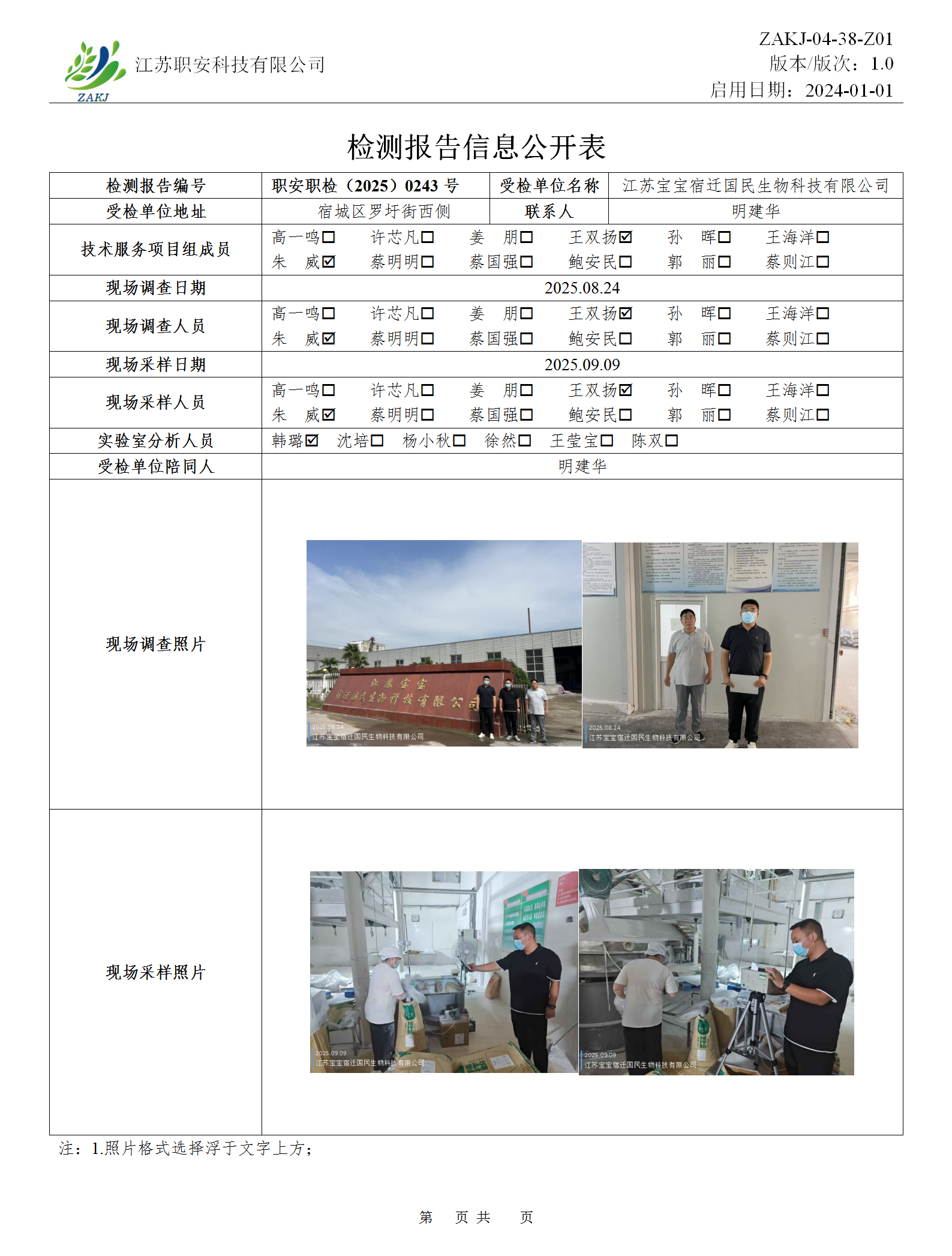 檢測報告公示