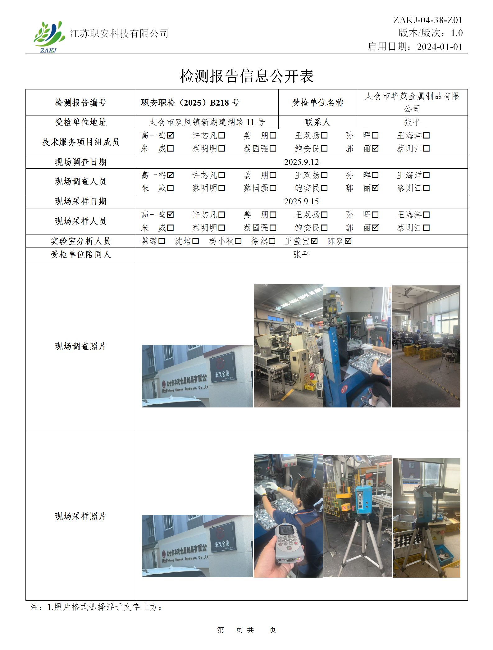 檢測報告公示