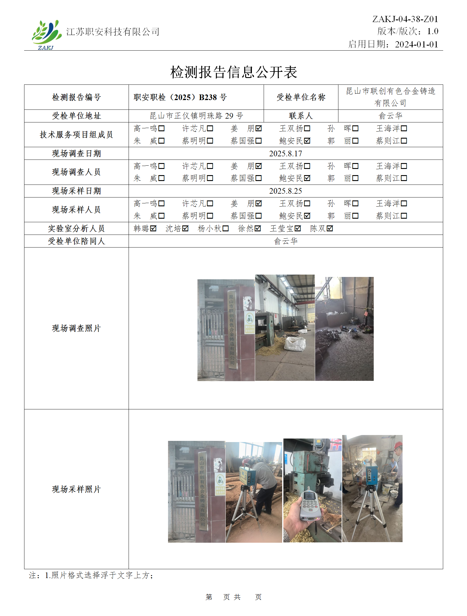 檢測報告公示