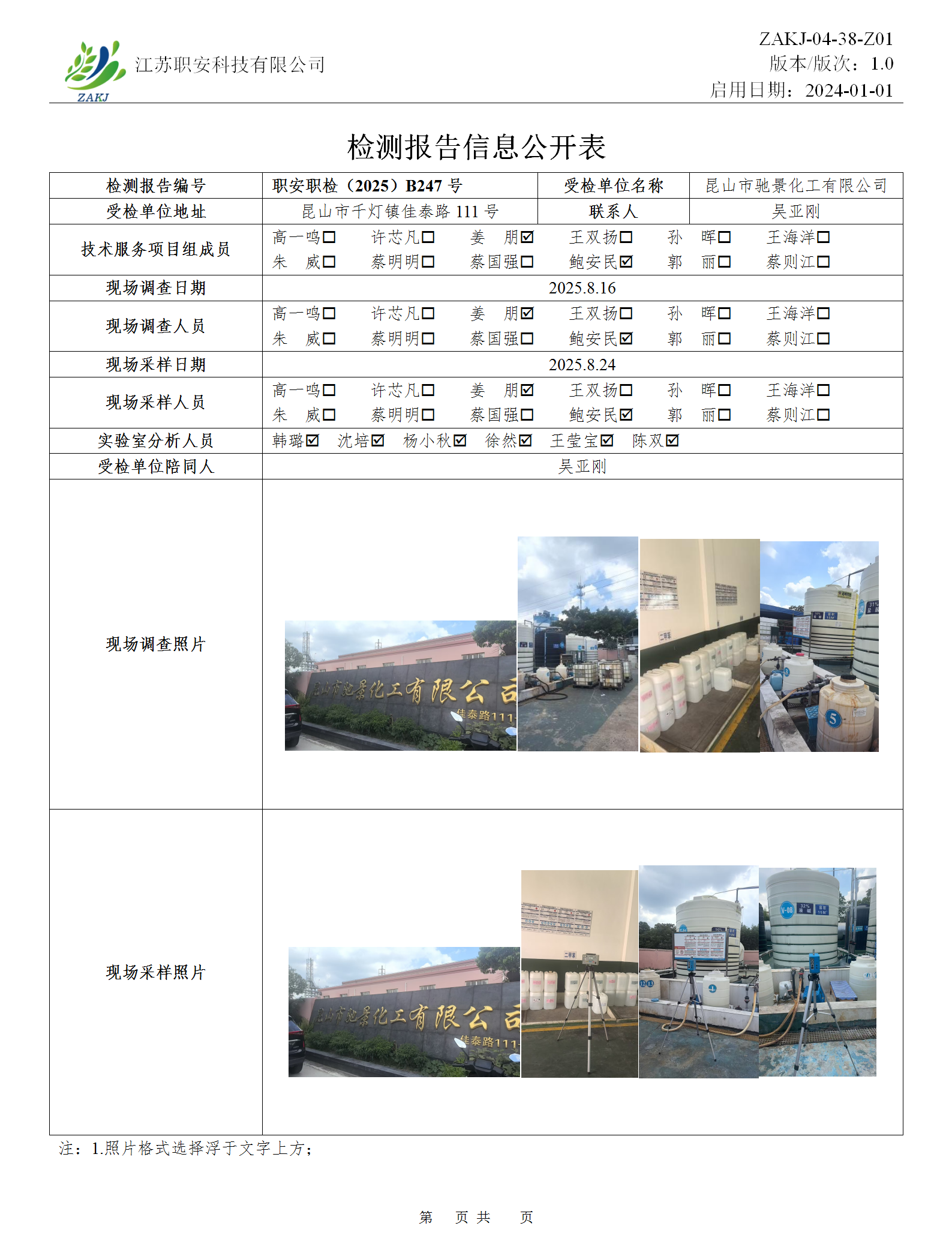 檢測報告公示