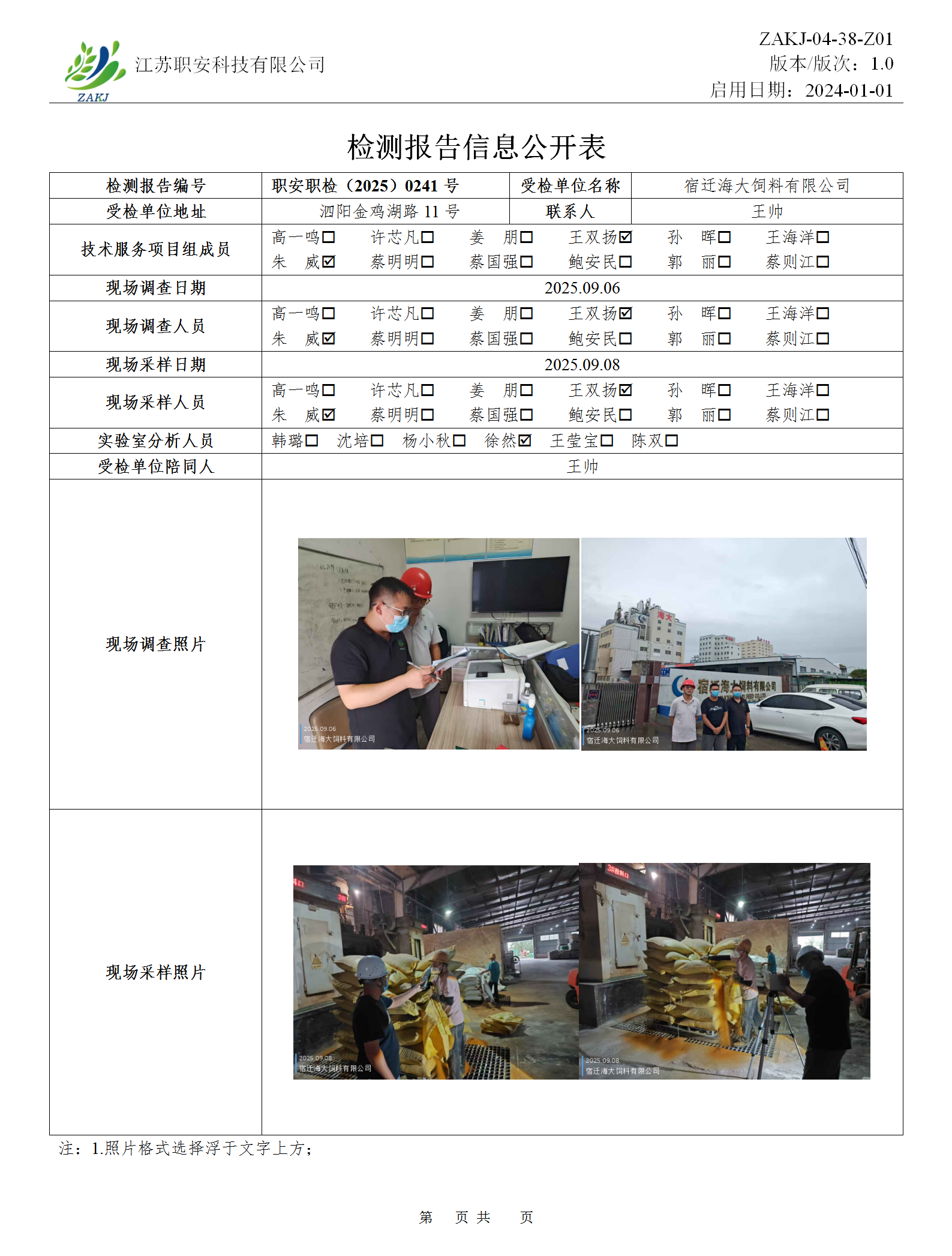 檢測報告公示