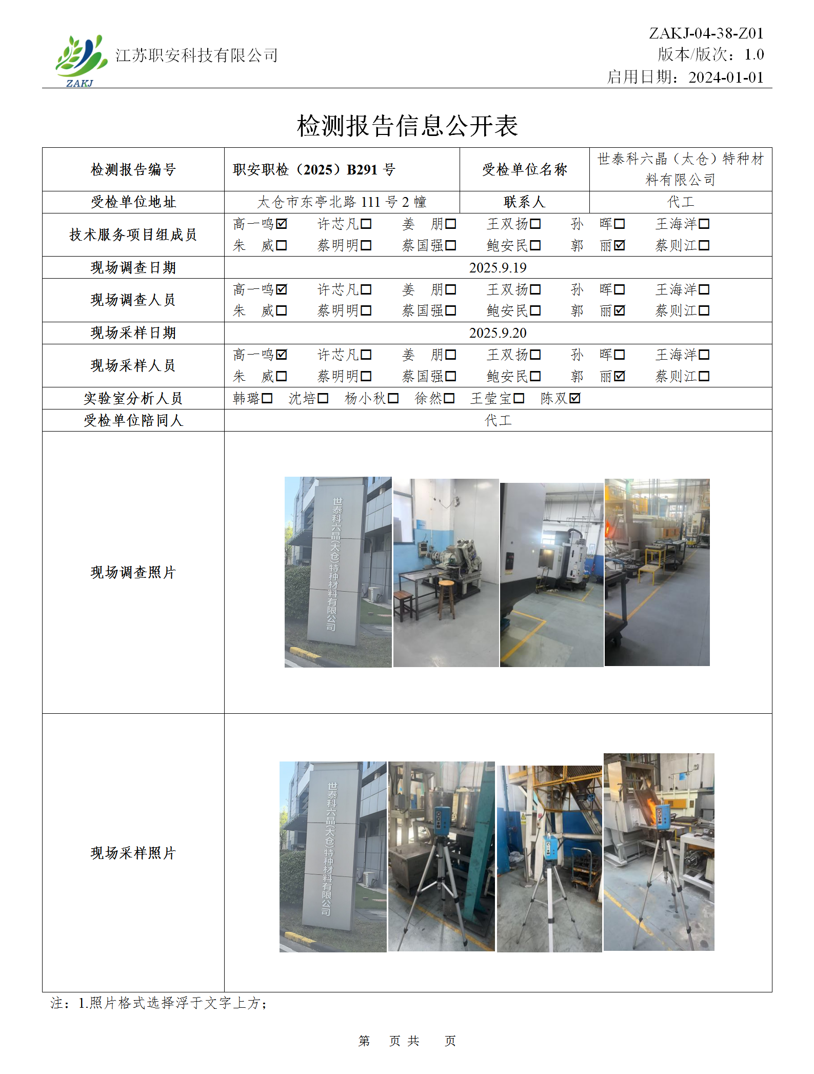 檢測報告公示