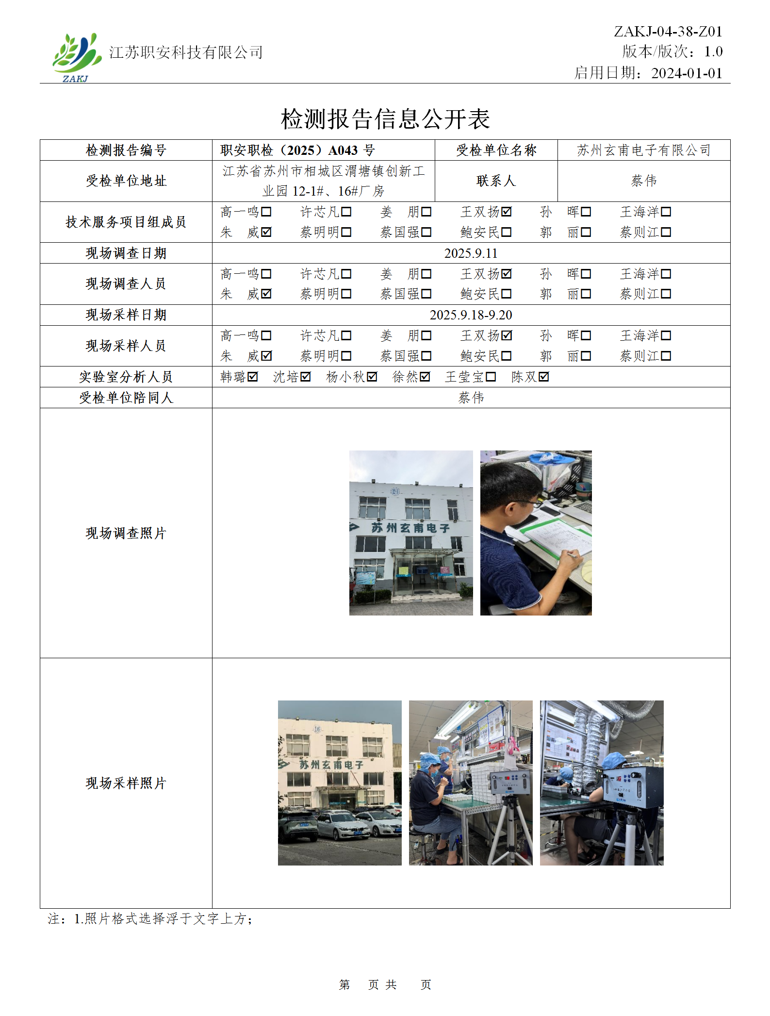 檢測報告公示