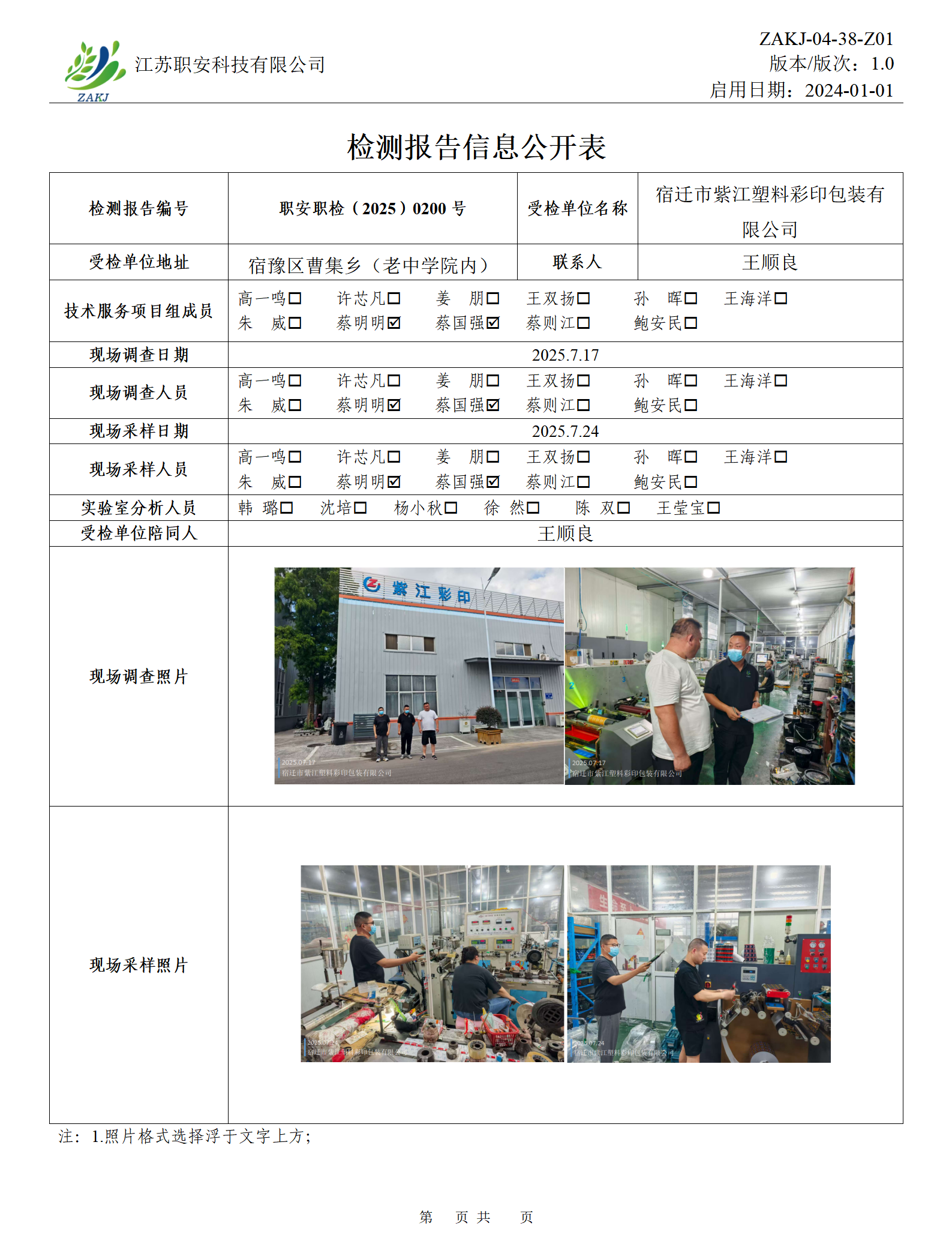 檢測報告公示