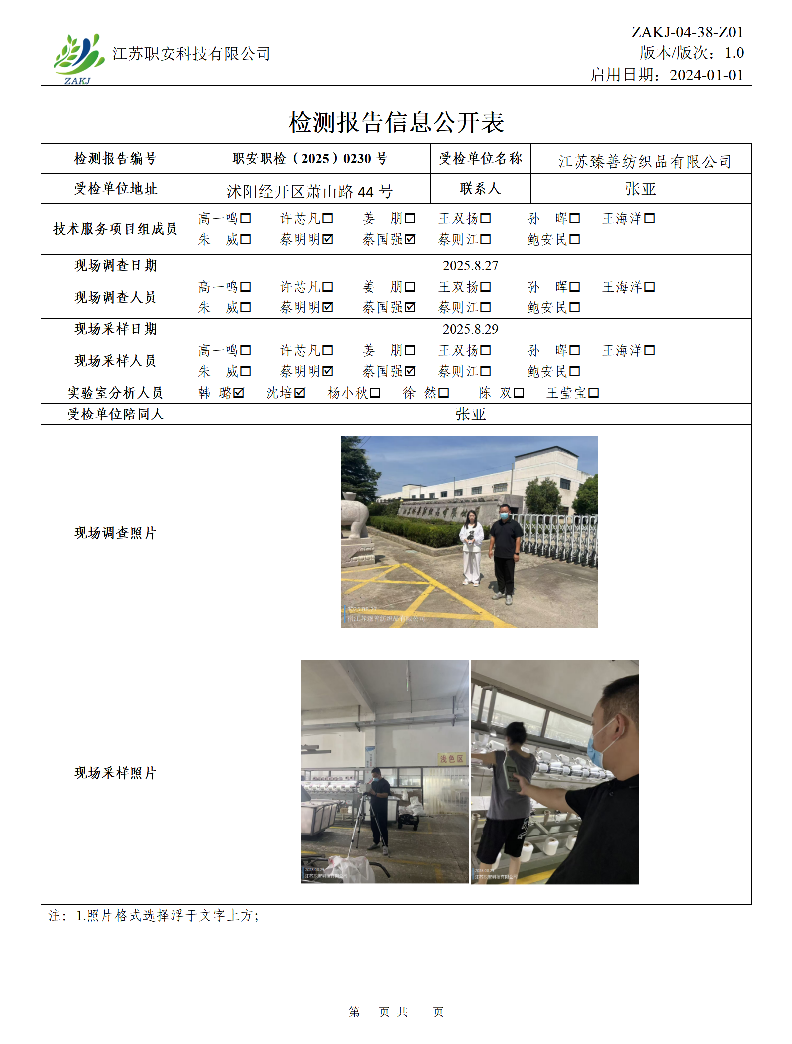 檢測報告公示