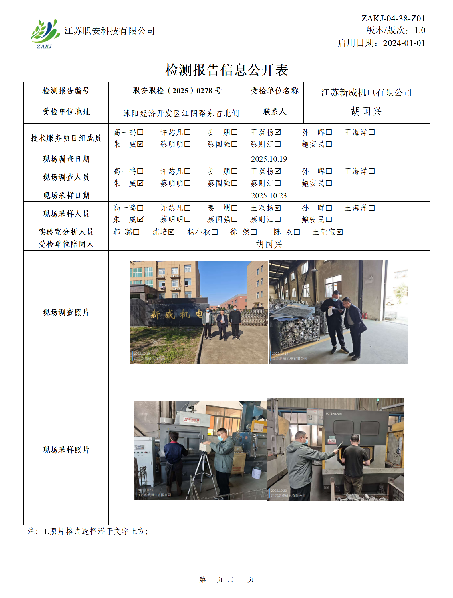 檢測報告公示
