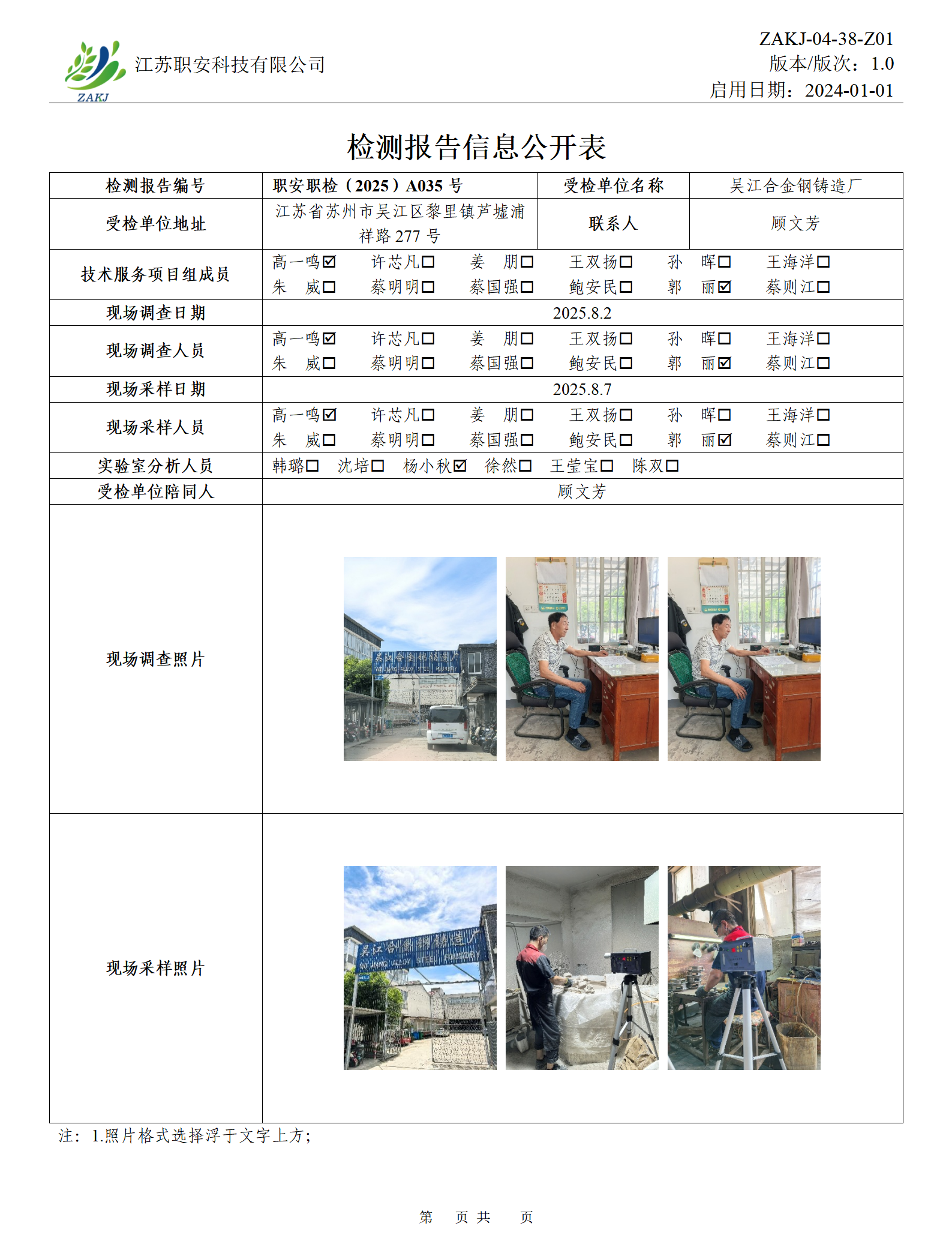 檢測報告公示