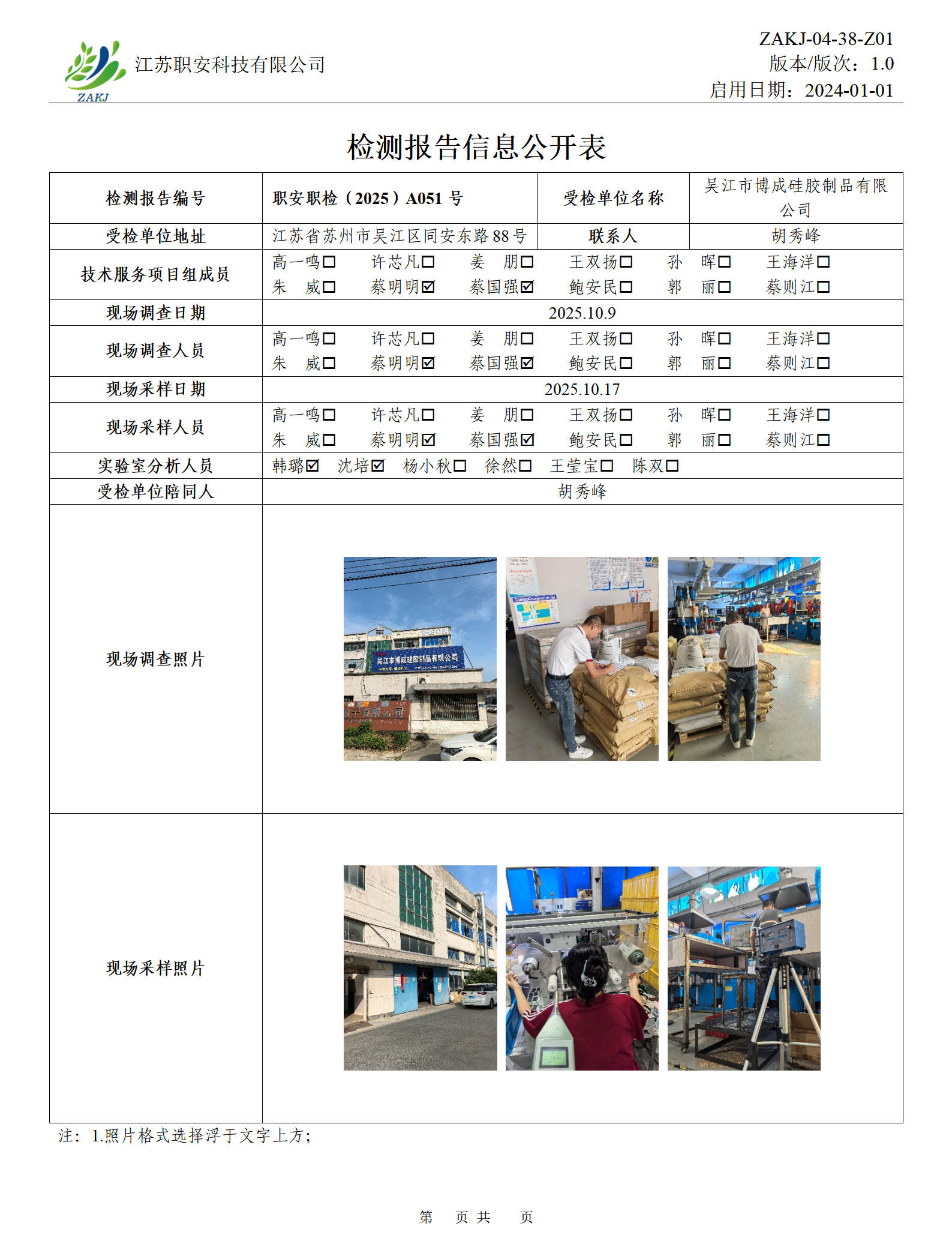 檢測報告公示