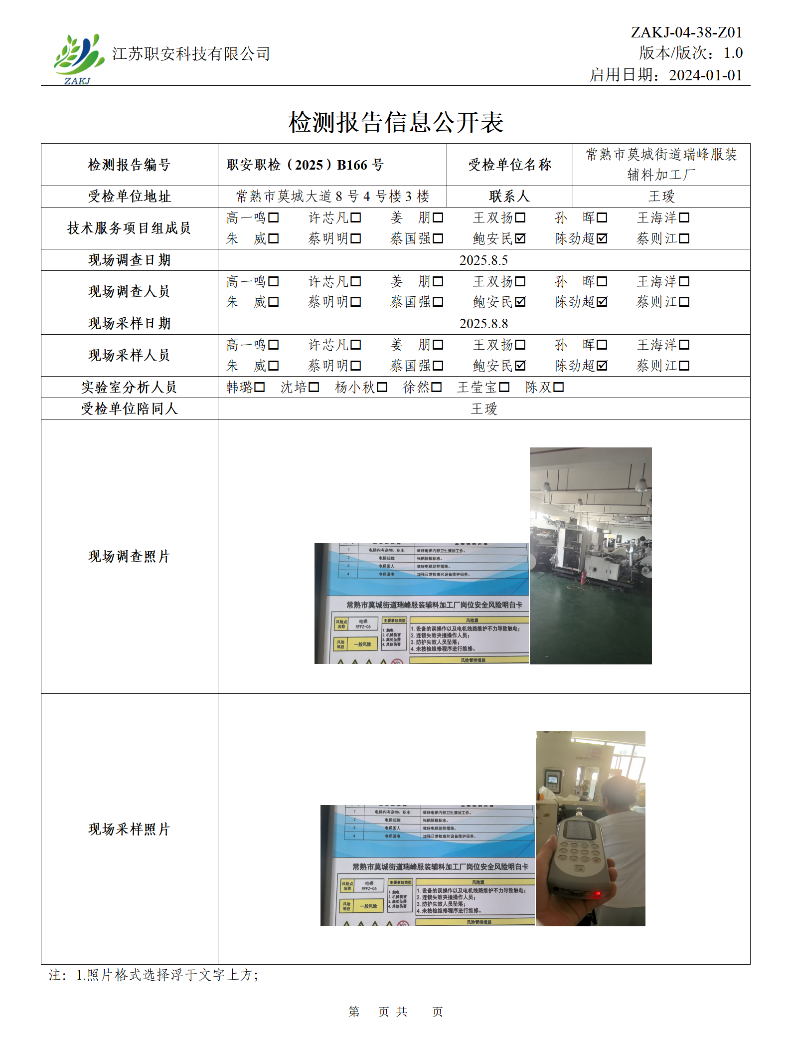 檢測報告公示
