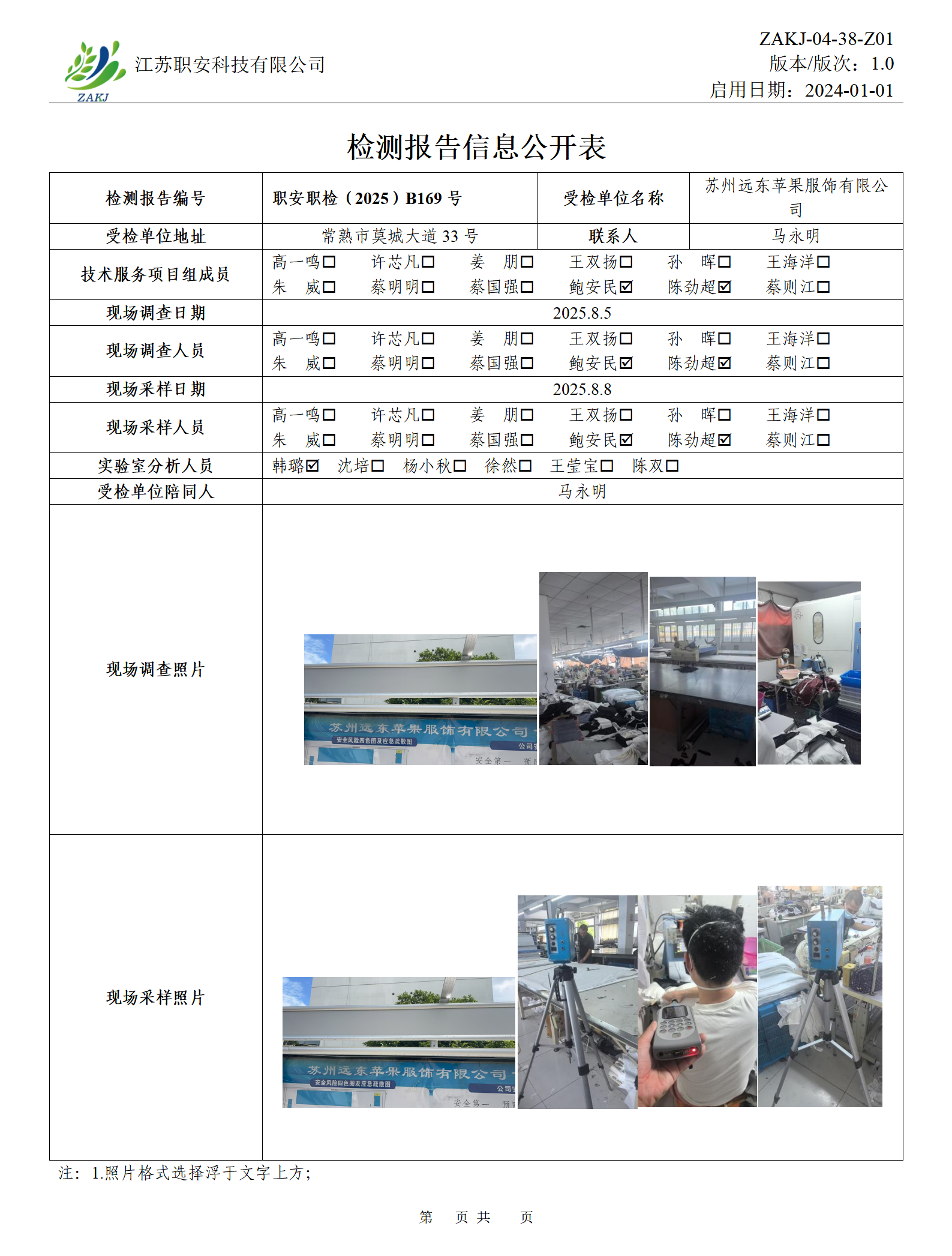 檢測報告公示