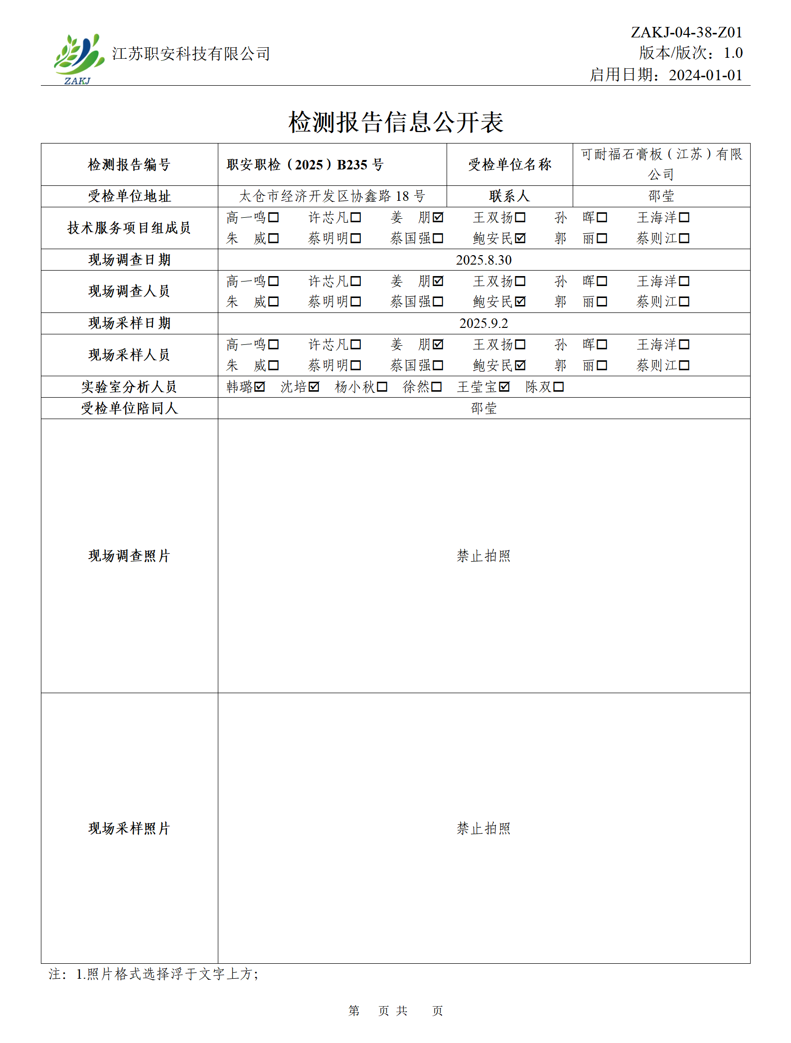 檢測(cè)報(bào)告公示