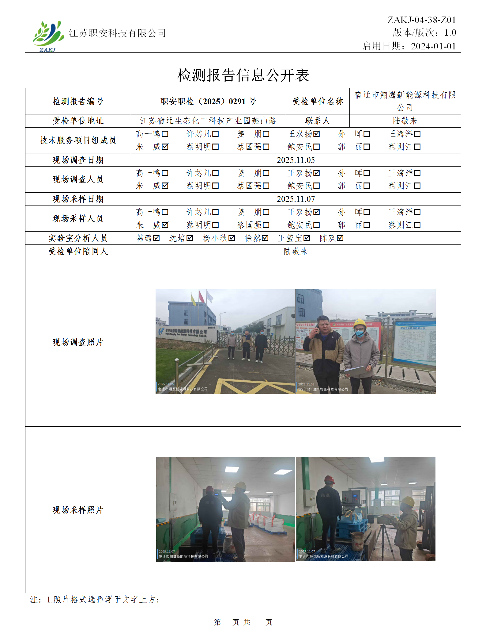 檢測報告公示