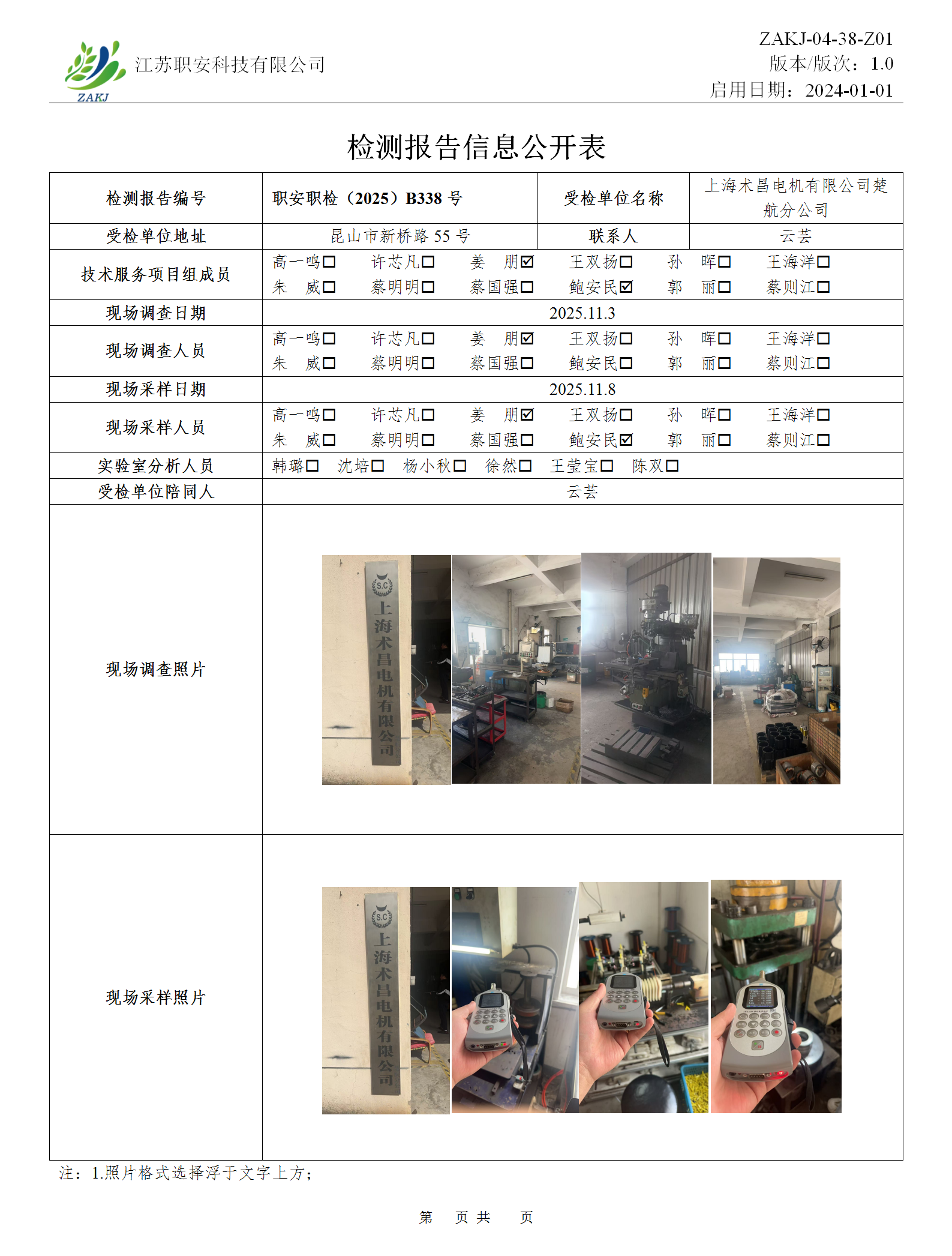 檢測報告公示