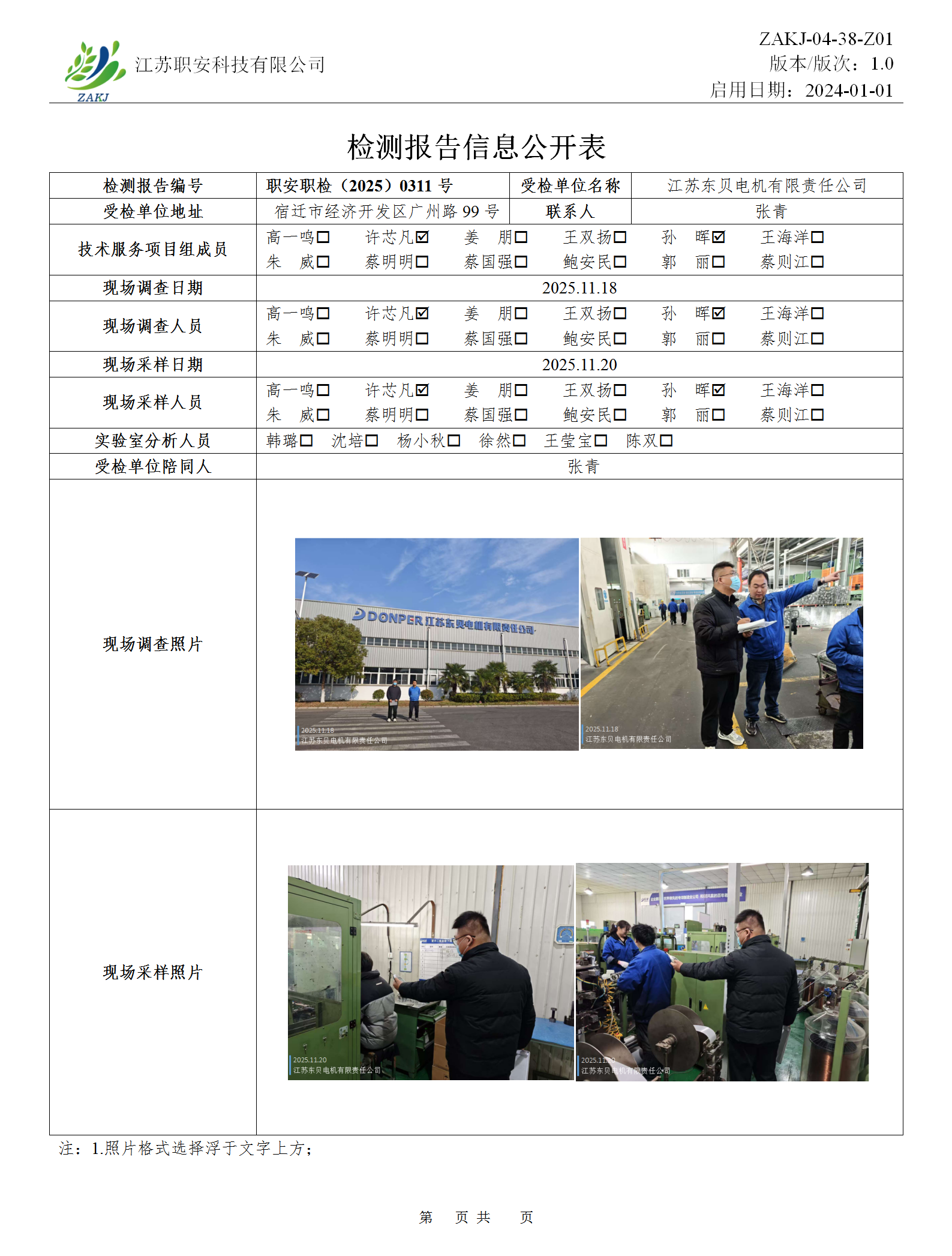 檢測報告公示