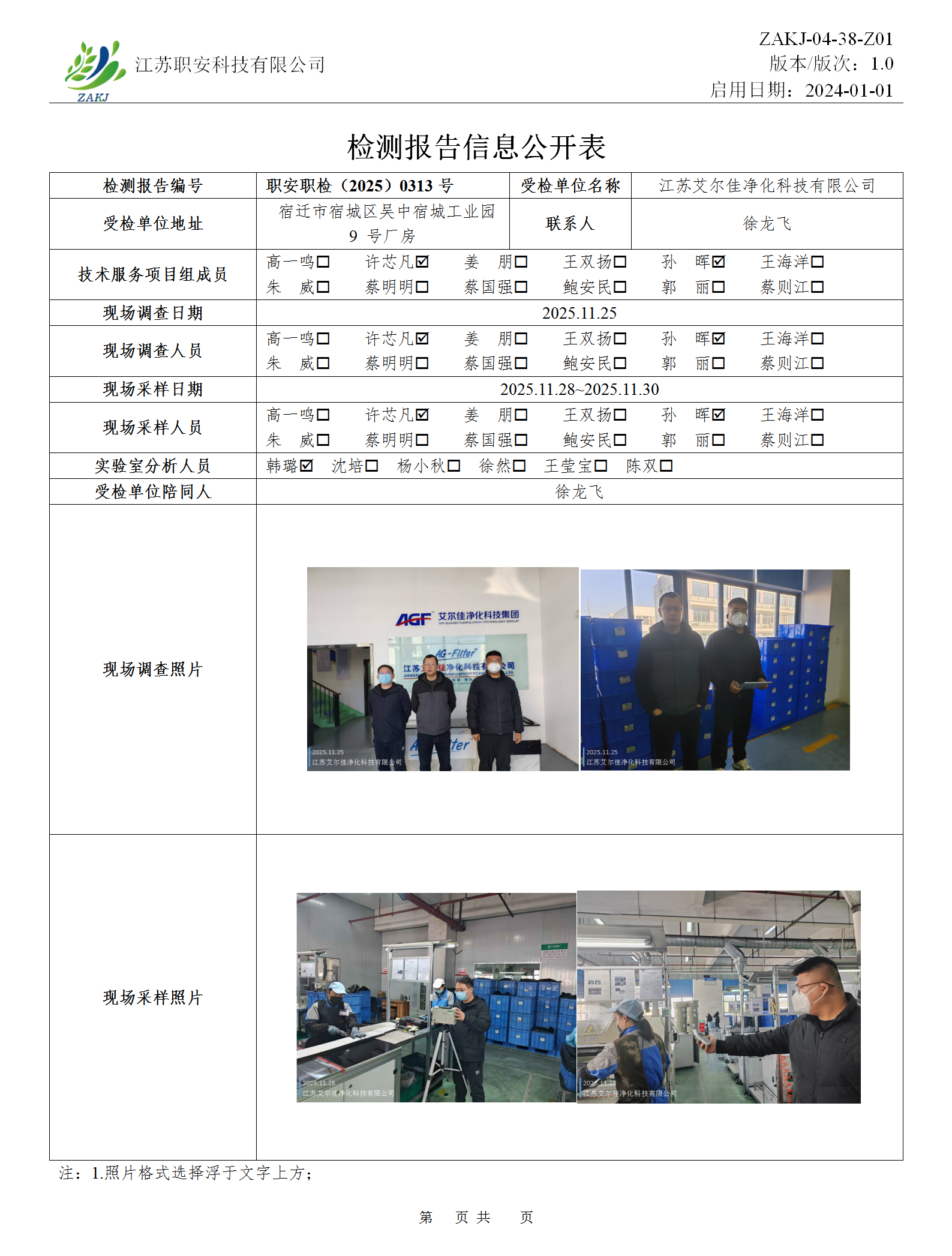 檢測報告公示