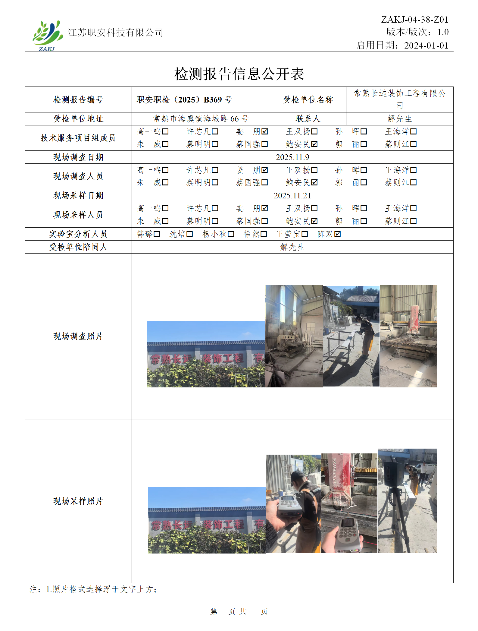 檢測報告公示