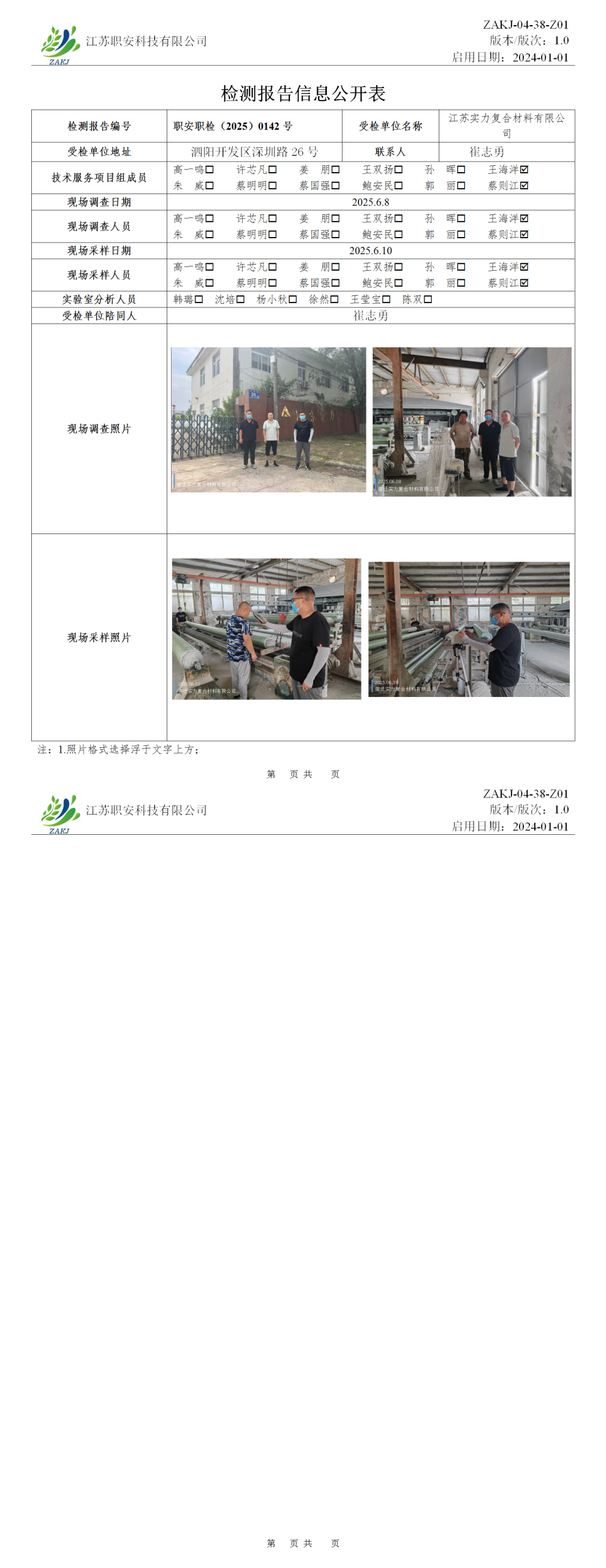 檢測報告公示