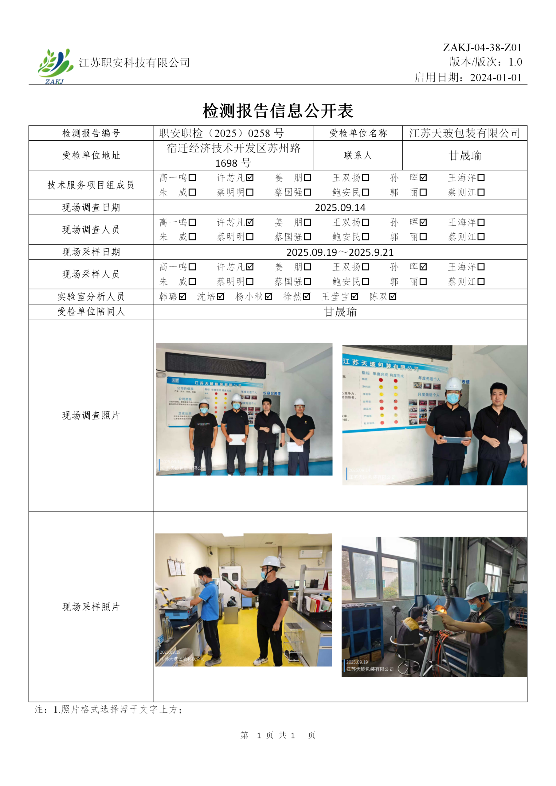 檢測報告公示