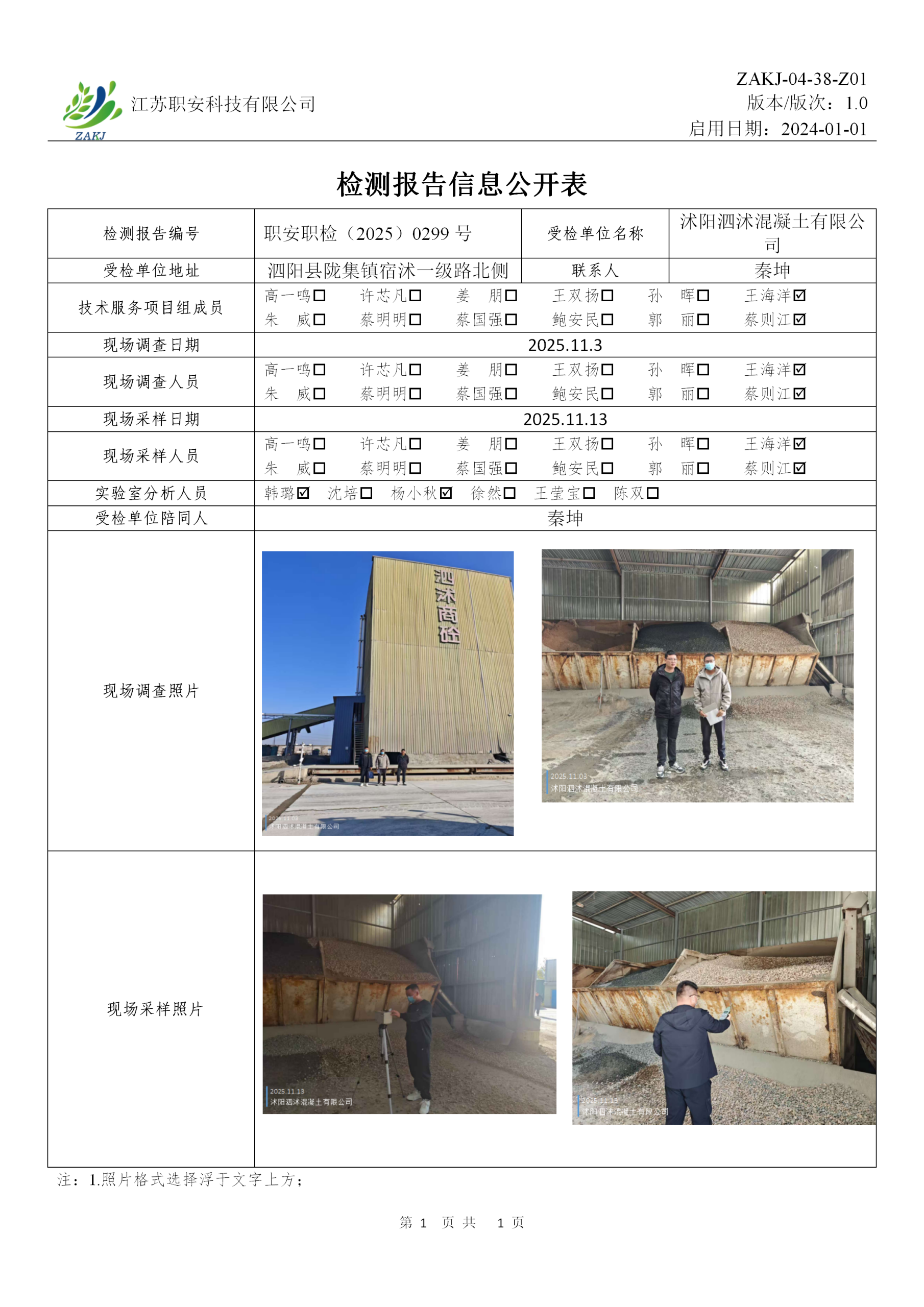 檢測報告公示