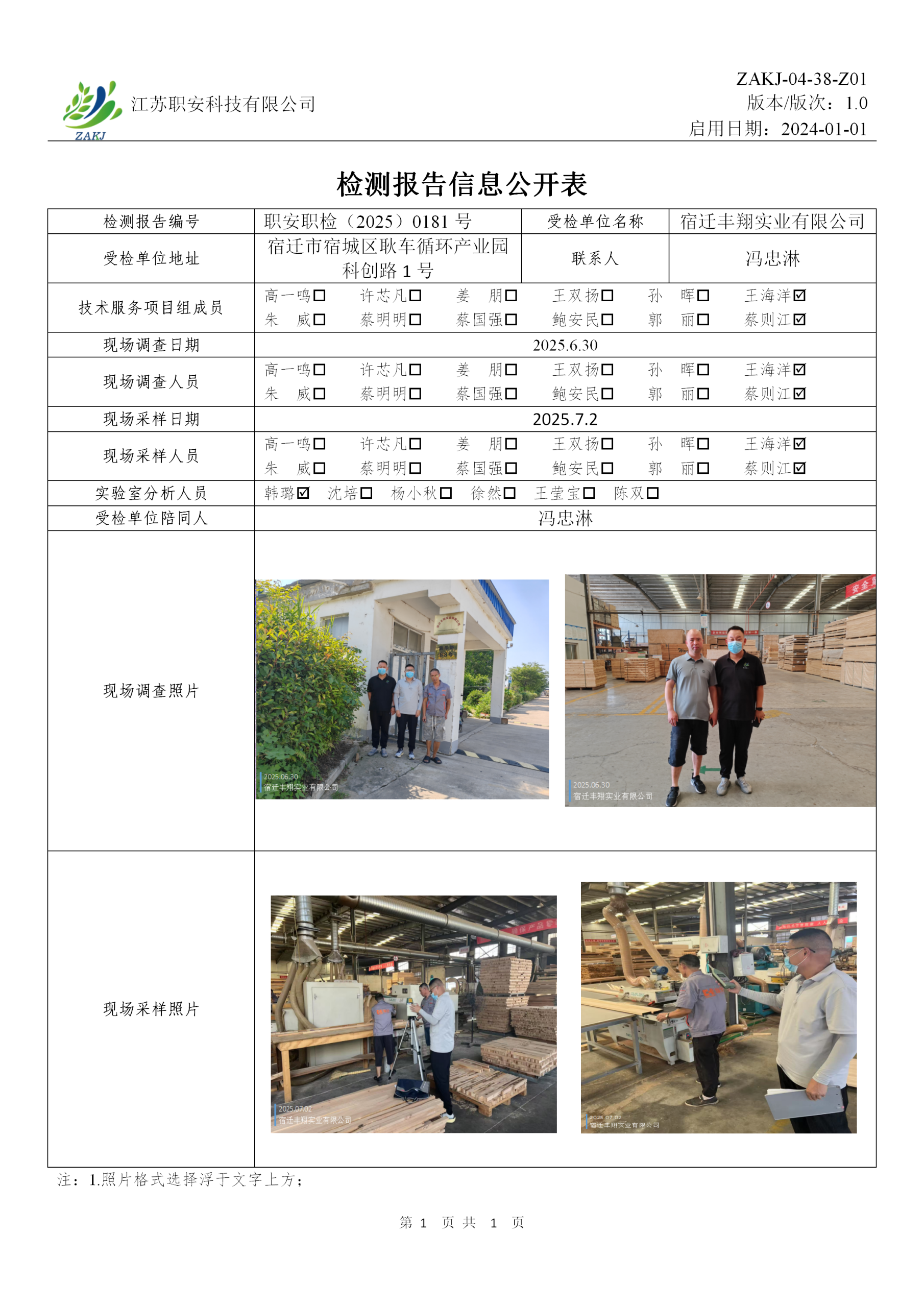 檢測報告公示